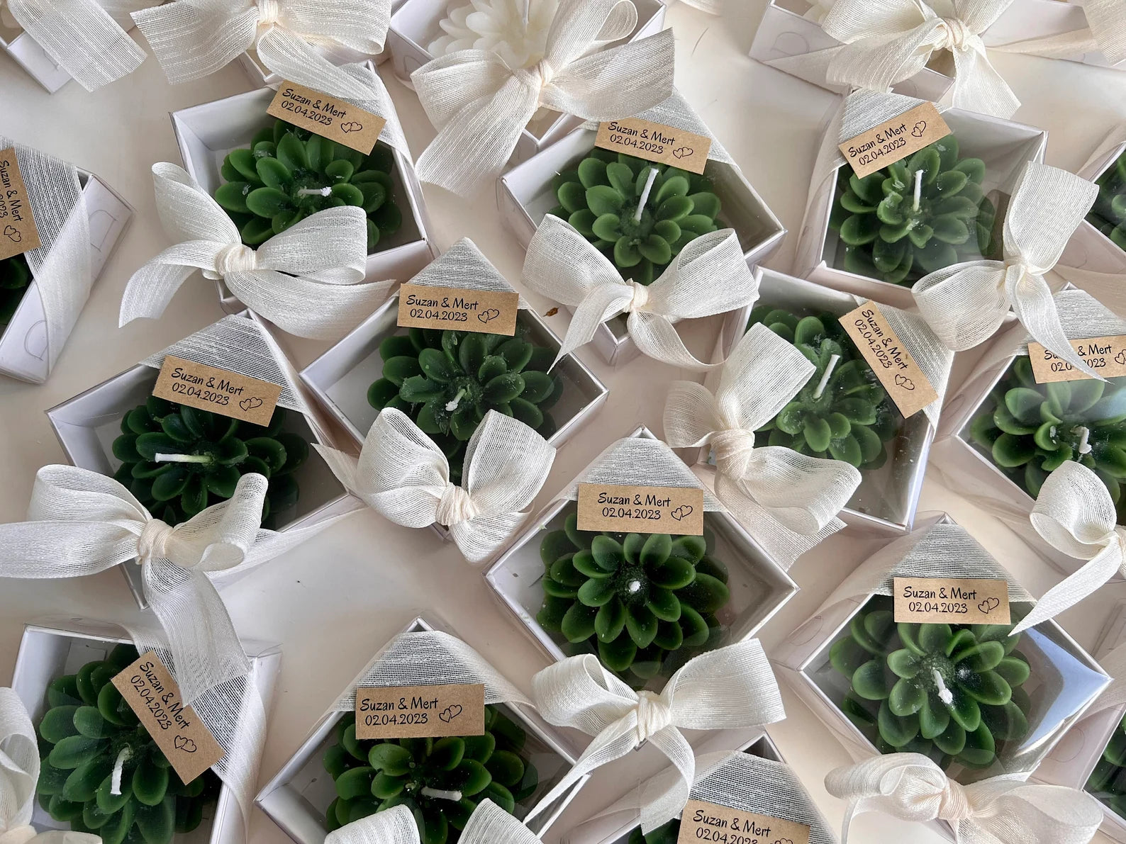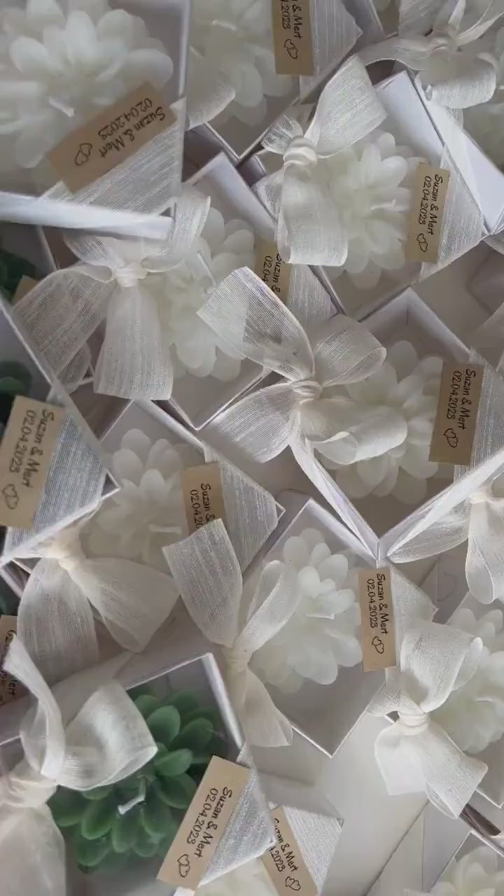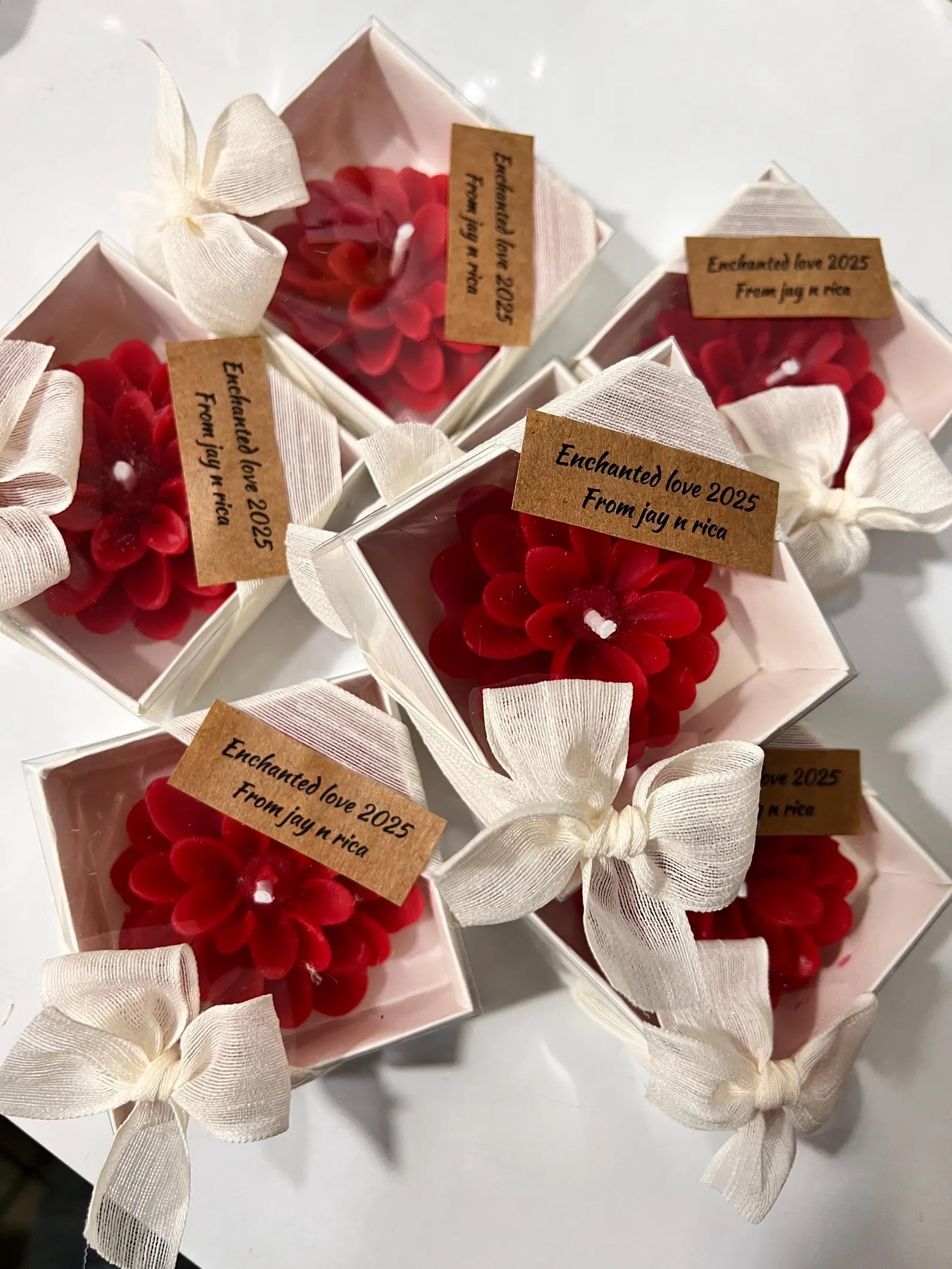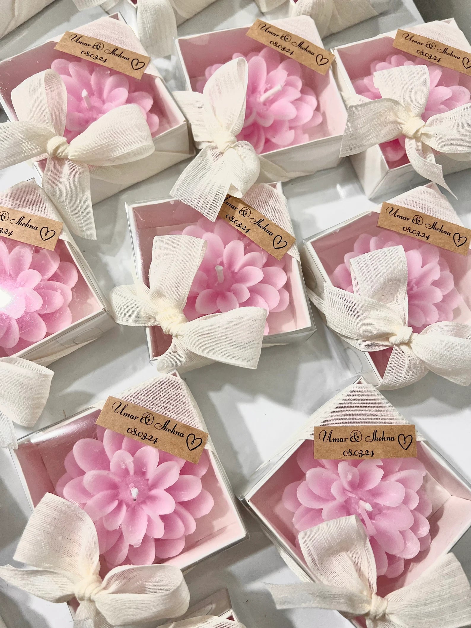 Lotus flower candles are placed in a kraft gift box, tied with a lace ribbon and personalized with a personalized kraft tag and made ready for you to gift to your loved ones :)
